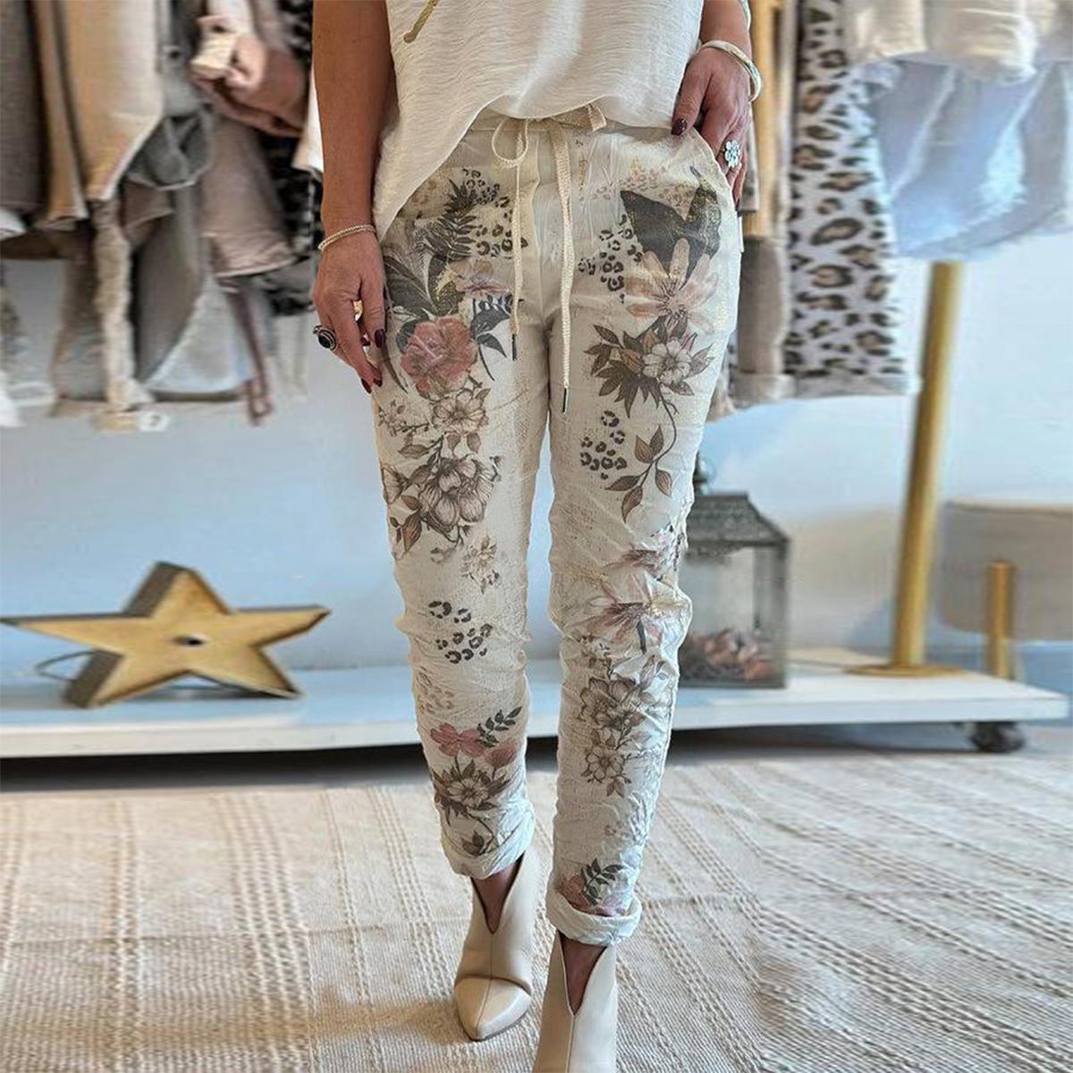 Diese Hose ist fachmännisch mit einem leuchtenden Blumendruck gefertigt und verfügt über einen elastischen Kordelzugbund für eine bequeme Passform. Perfekt, um jedem Outfit einen Hauch von Frische zu verleihen. Diese Hose ist aus hochwertigen Materialien gefertigt und wird Ihren Stil mit Sicherheit aufwerten und gleichzeitig den ganzen Tag über Komfort bieten.