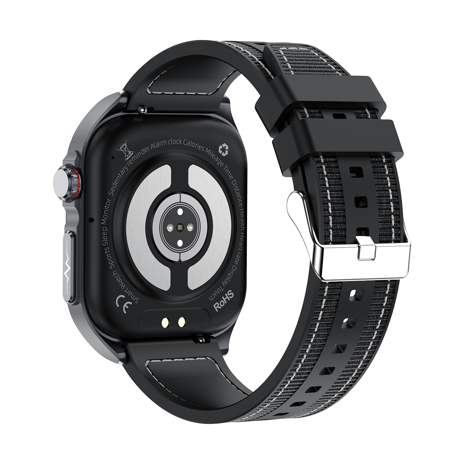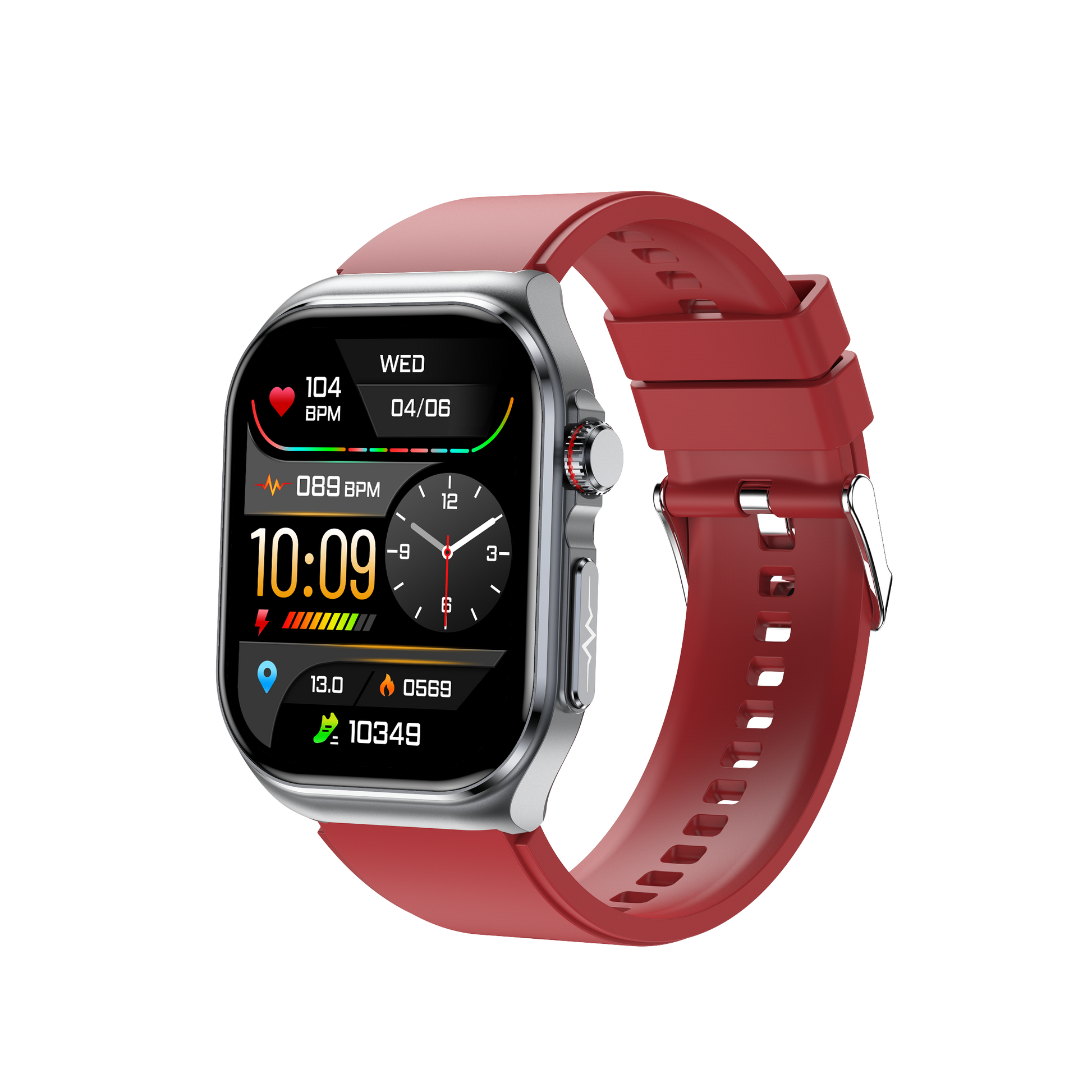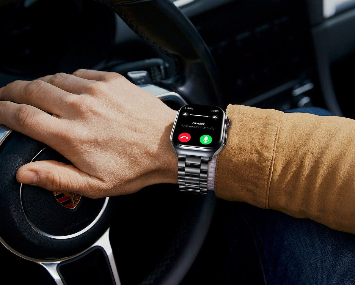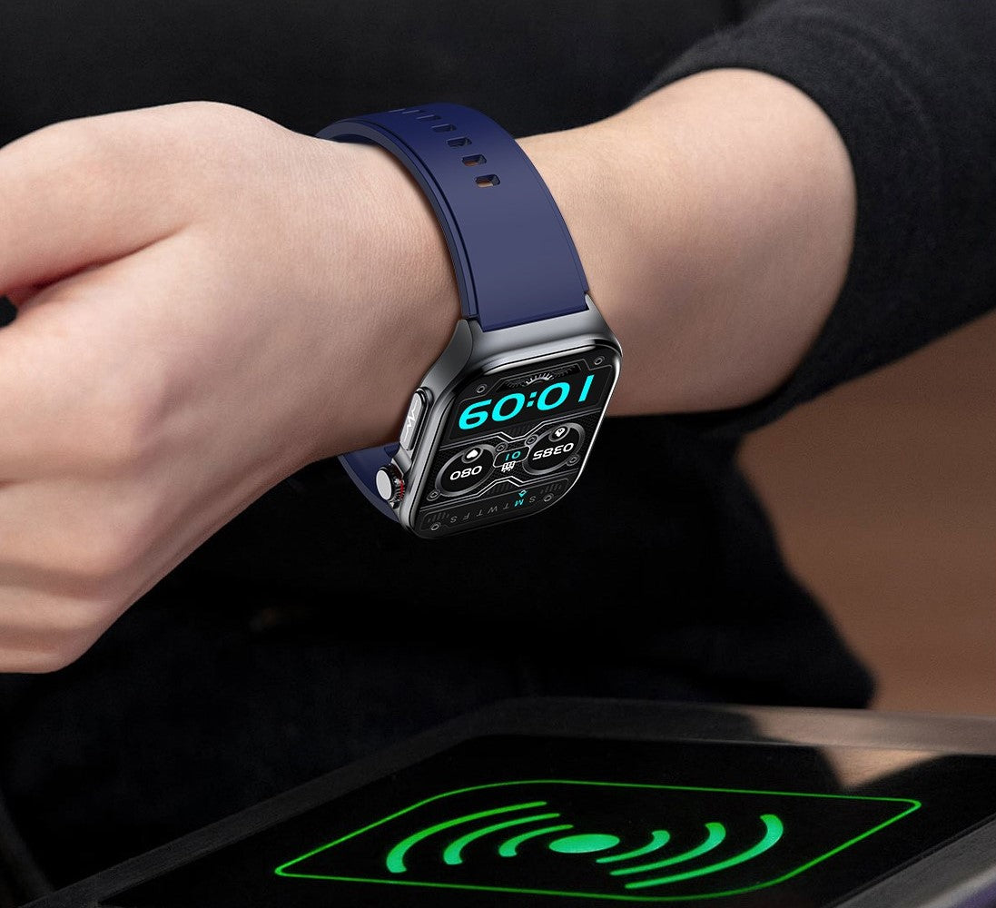 Modern: Modernes, eckiges Design mit erweiterten, benutzerfreundlichen Features, wie der neuen drehbaren Krone, die eine intuitive Navigation ermöglicht.