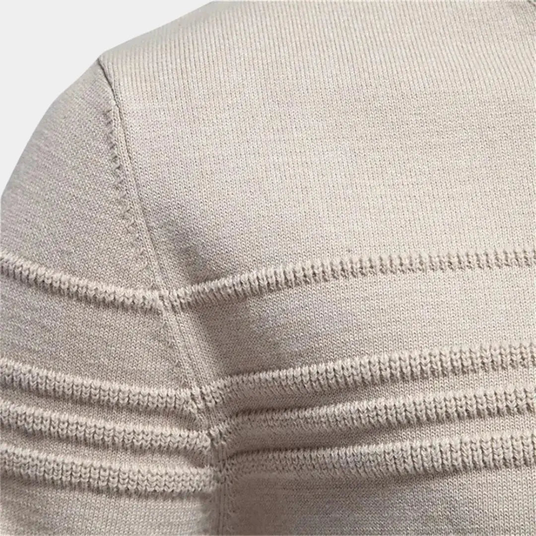 Werten Sie Ihre Garderobe mit unserem luxuriösen Cotton Knitted Stripped Crew Neck Pullover auf. Dieser raffinierte Pullover aus hochwertiger Baumwolle besticht durch sein zeitloses Streifendesign, das sich für jeden Anlass eignet. Halten Sie sich warm und stilvoll mit diesem exklusiven Stück, das für einen König geeignet ist.