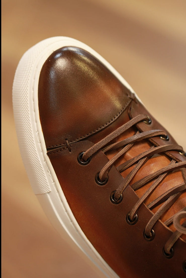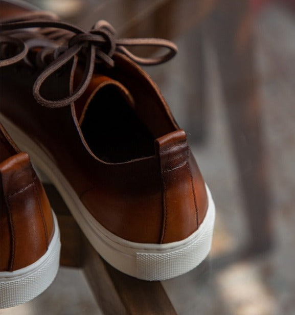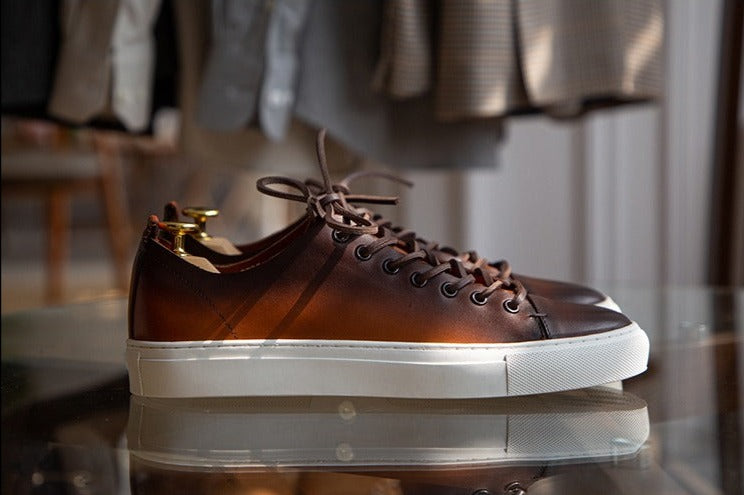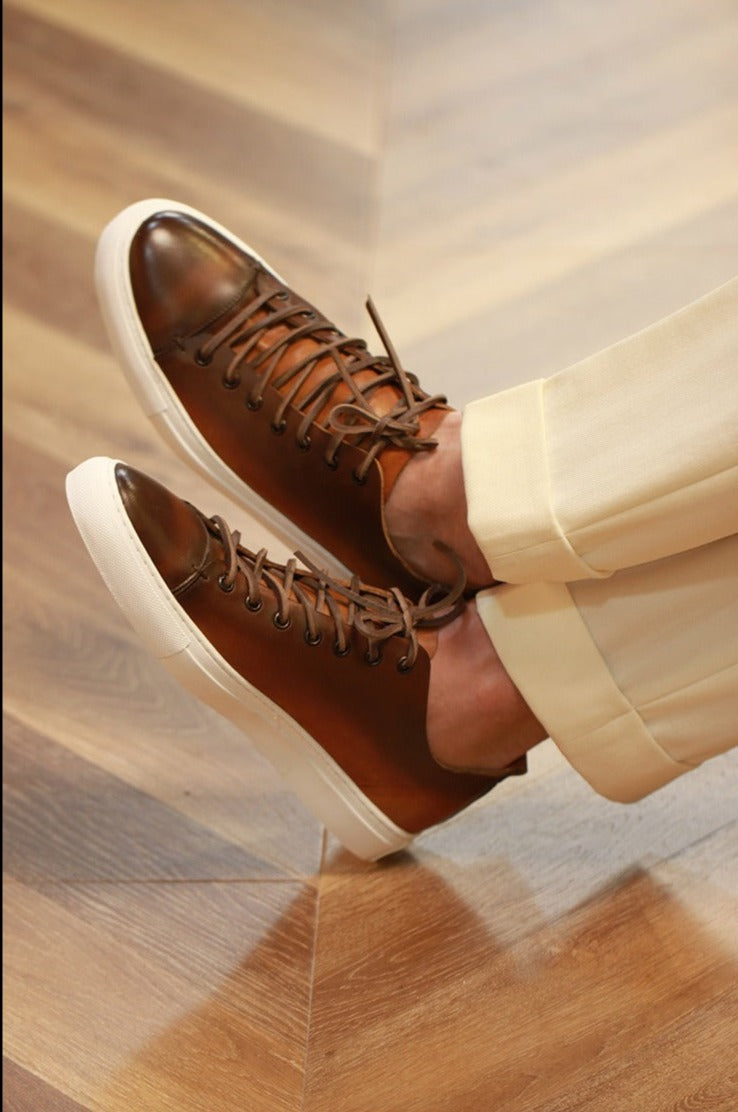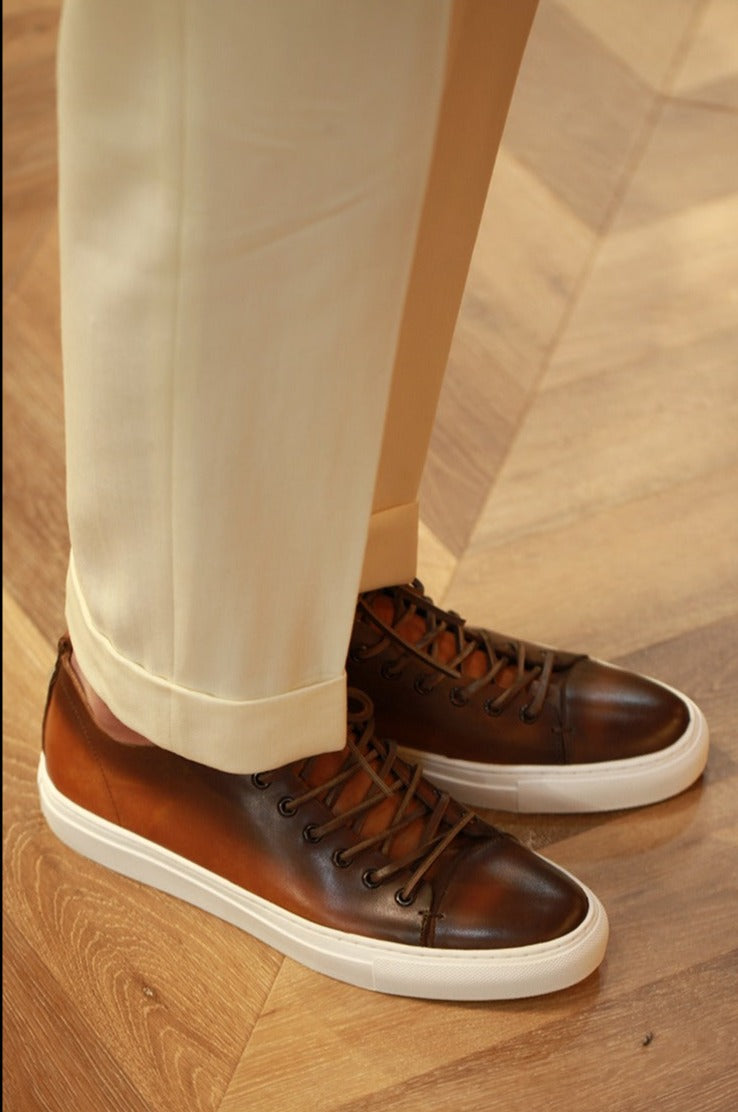 Setzen Sie ein raffiniertes Statement auf der Straße mit den „Heritage“ Lace-Up Leather Sneakers von Porto Richezze. Handgefertigt aus luxuriösem Leder, bieten diese schicken Schuhe eine perfekte Mischung aus Komfort und Eleganz. Mit einer zeitlosen Silhouette von lässiger Raffinesse, werden diese zeitlos modischen Sneakers jedem Look einen exklusiven Stil verleihen.