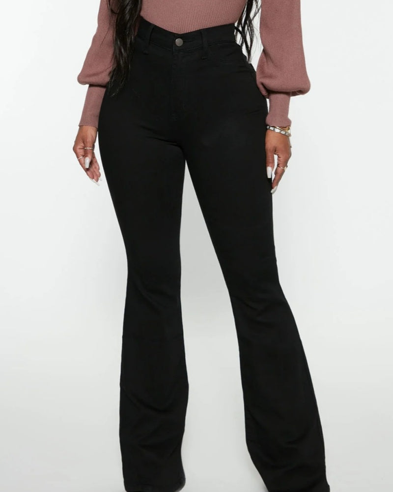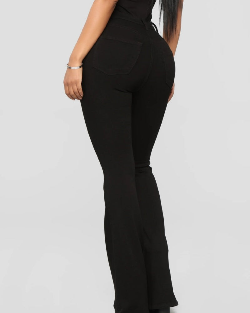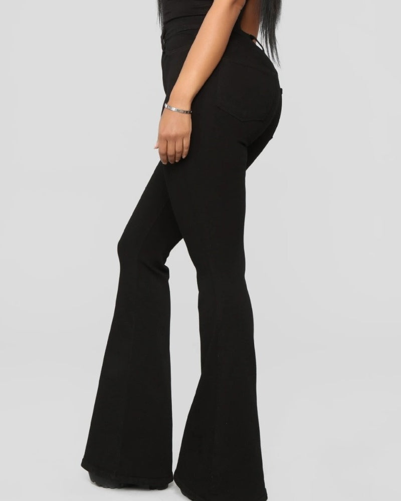 Diese Jeans kombiniert Stretch, offene Kanten und ausgestellte Beine für einen stylischen und schicken Look!