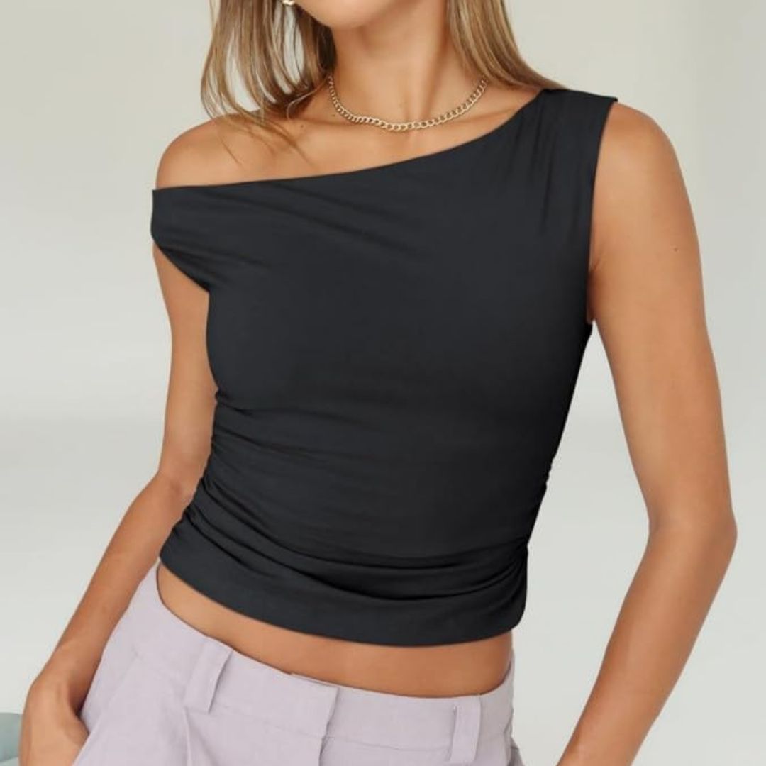 Schwarzstil Damen Crop-Top: Stilvolle Asymmetrie für jeden Anlass