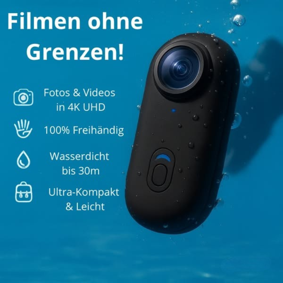 World Pro ist eine freihändige 4K-UHD-POV-Kamera für Abenteuer, Action und den Alltag. Dank ihres ultraleichten, tragbaren Designs kannst du jeden Moment mühelos aufnehmen – beim Velofahren, Vloggen oder Erkunden neuer Umgebungen. Die Kamera bietet KI-gestützte Stabilisierung, klare Audioaufnahmen, Ultraweitwinkel-Video und Sprachsteuerung für ruhige, immersive Aufnahmen ganz ohne Handgriff. Das robuste, wasserdichte Gehäuse sorgt für zuverlässigen Einsatz in jeder Umgebung. Integriertes WLAN und Bluetooth ermöglichen eine schnelle Verbindung und einfaches Teilen der Aufnahmen. Anklippen, befestigen und das Erlebnis erneut erleben – World Pro hält deine Welt in Bewegung fest.