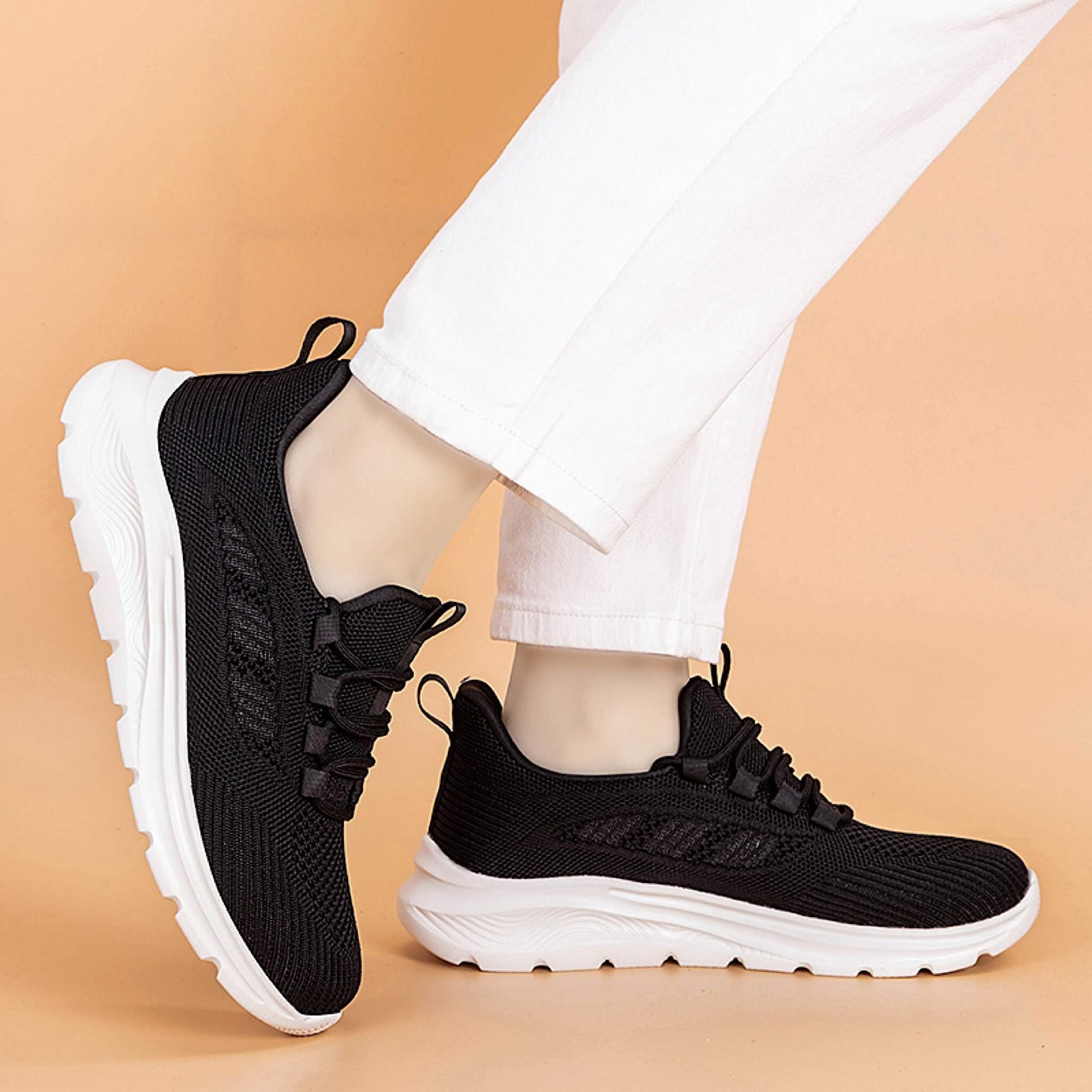 Der Schwarzkomfort Sneaker vereint modernes Design mit höchstem Tragekomfort. Dank seines atmungsaktiven Strickmaterials und der flexiblen, leichten Sohle ist er der ideale Begleiter für den Alltag – egal ob beim Spazieren, auf der Arbeit, beim Shoppen oder auf Reisen.