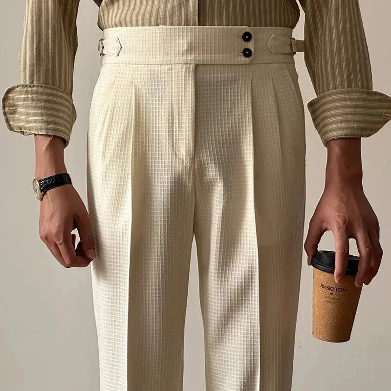 Gönnen Sie sich Luxus mit unserer Vintage Geldhose, die mit ihrem zeitlosen Design Raffinesse und Eleganz ausstrahlt. Gefertigt aus den feinsten Materialien, hebt diese Hose Ihren Stil und verkörpert den Reiz des alten Geldes. Umarmen Sie den zeitlosen Charme und setzen Sie mit jedem Schritt ein Statement.