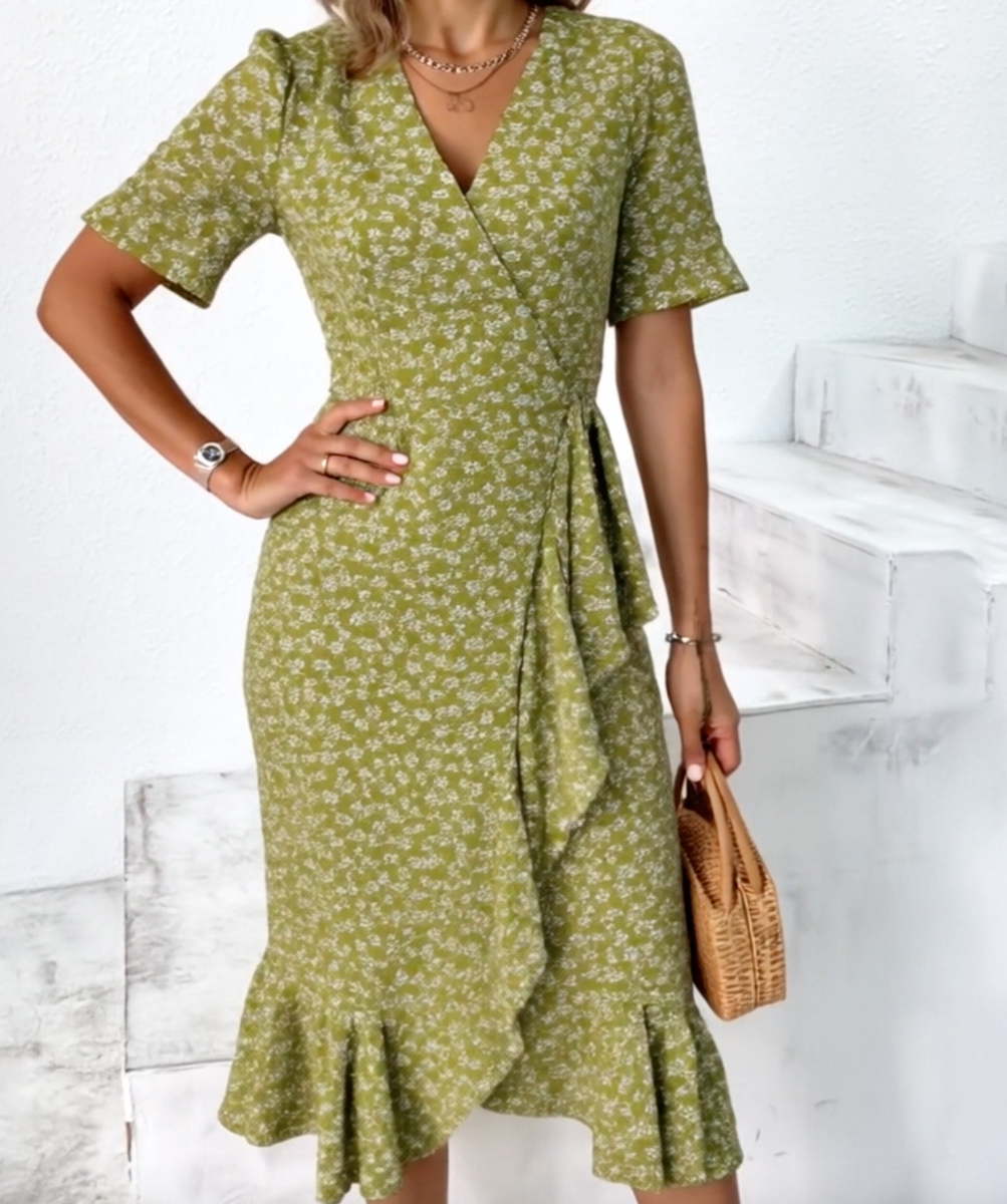 Dieses elegante und vielseitige grüne Midikleid mit kurzen Ärmeln und V-Ausschnitt ist ein Muss in jedem Kleiderschrank. Mit seinem schmeichelhaften V-Ausschnitt, den bequemen kurzen Ärmeln und der klassischen Midi-Länge kann es Sie mühelos vom Tag in die Nacht begleiten. Aus hochwertigem Stoff gefertigt, sieht dieses Kleid nicht nur toll aus, sondern fühlt sich auch toll auf der Haut an. Dieses Kleid ist perfekt für jeden Anlass und wird mit Sicherheit zu einem Grundnahrungsmittel in Ihrem Kleiderschrank.