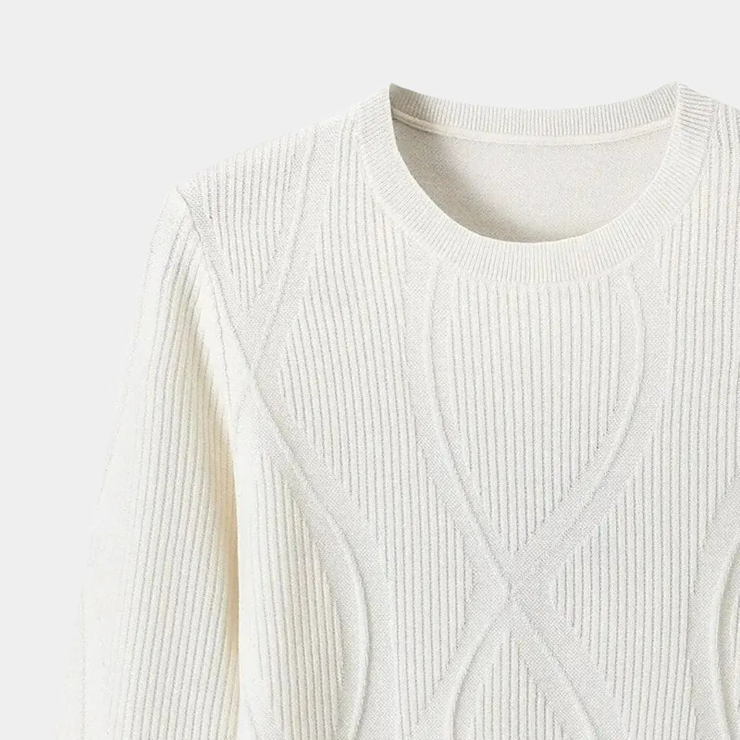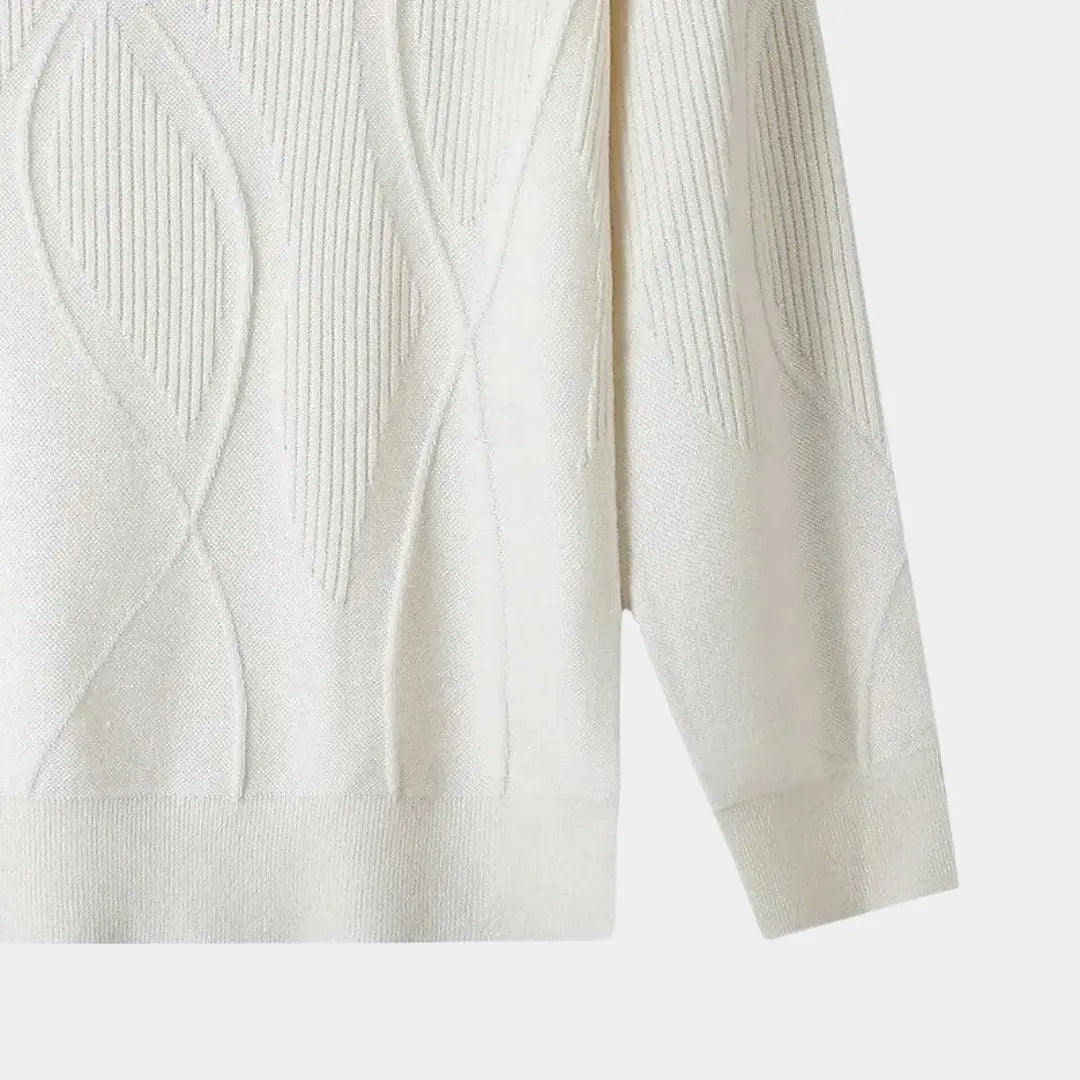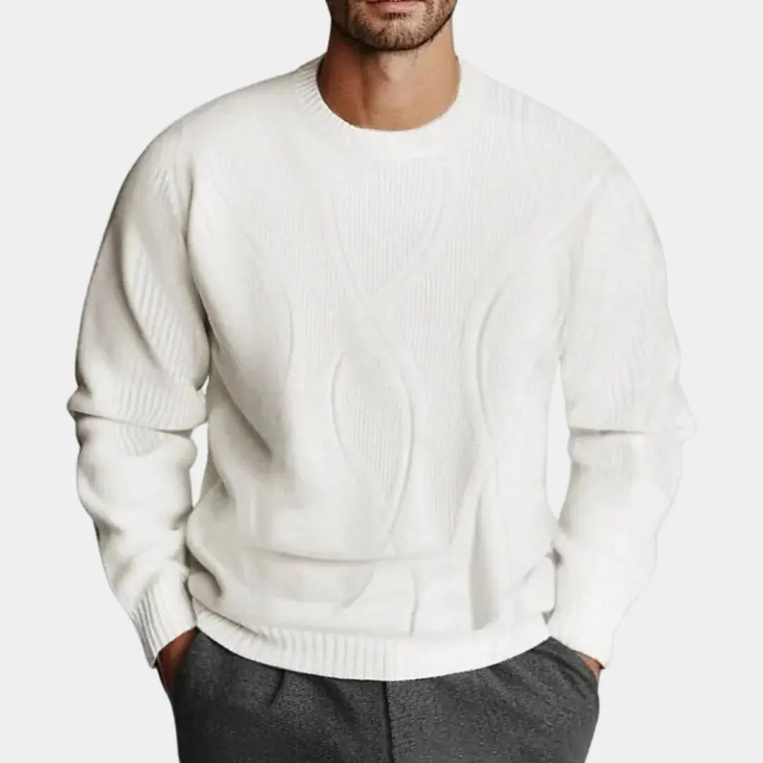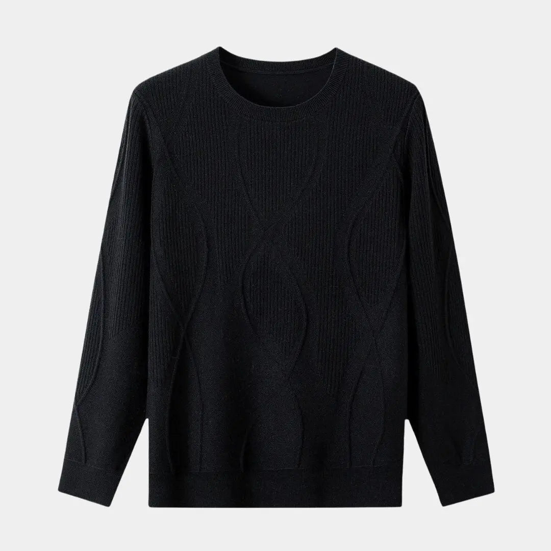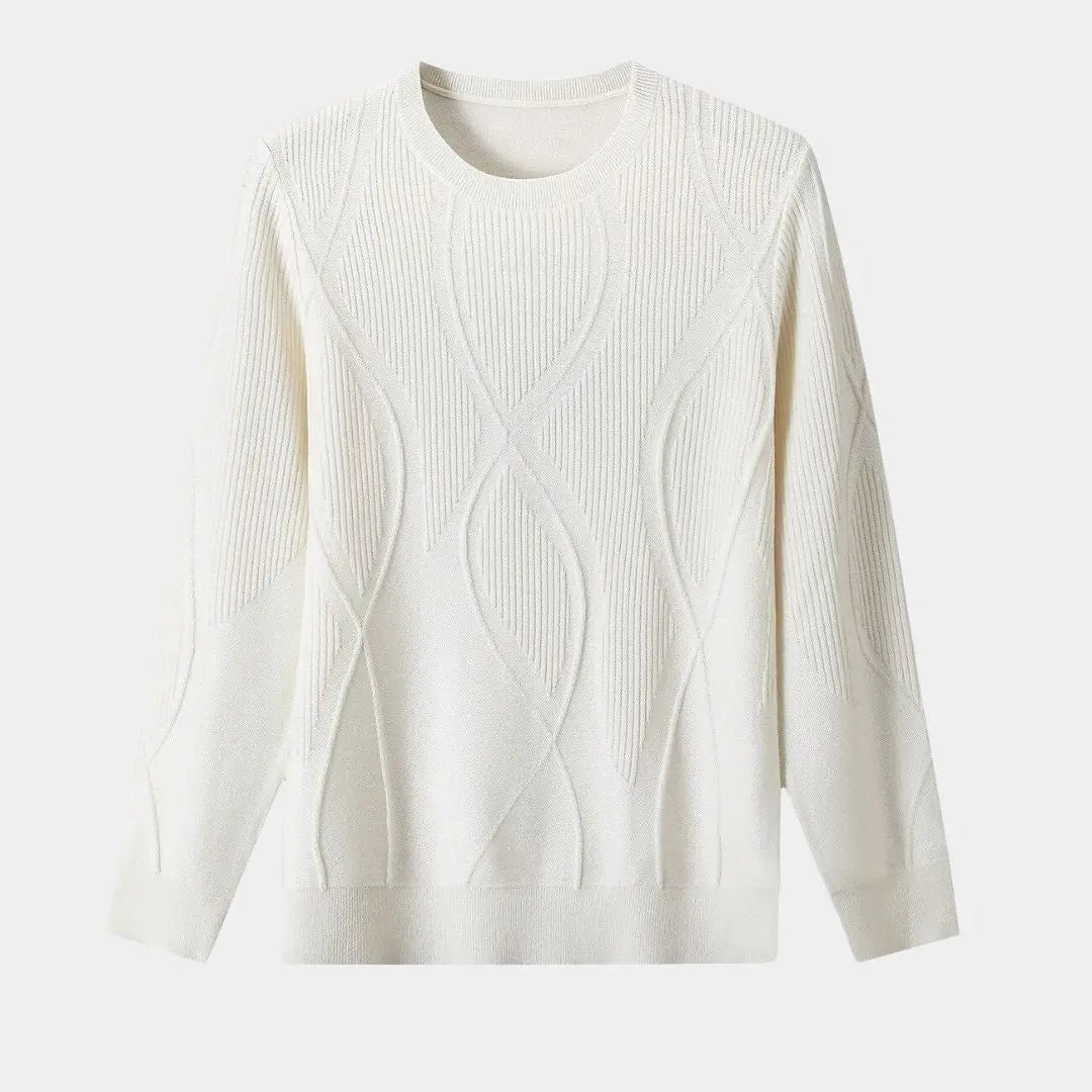 Dieser Wollpullover stellt sich vor. Dieser luxuriöse Pullover aus hochwertiger Wolle ist sowohl elegant als auch warm. Das verschlungene Muster und die Marke verleiht ihm einen Hauch von Raffinesse. Perfekt für alle, die eine geschmackvolle und exklusive Ergänzung zu ihrer Garderobe suchen.